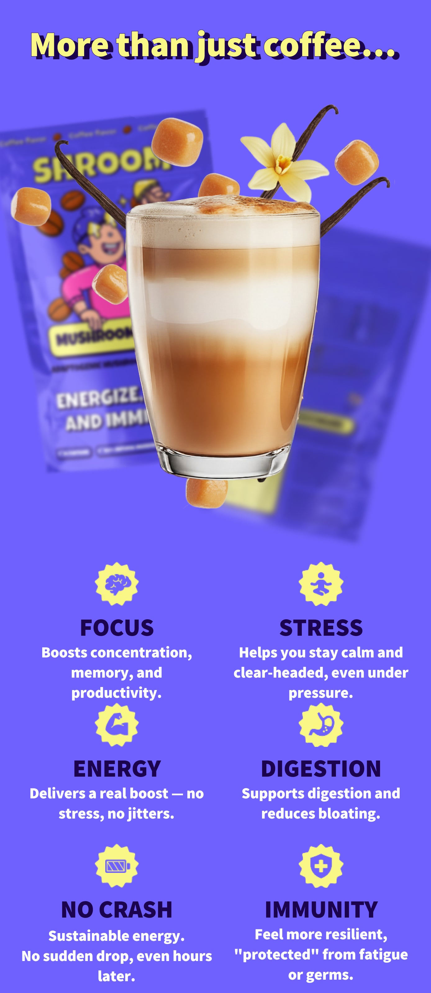 Our research* uncovered a game-changing formula: mushroom coffee that does NOT taste like mushrooms.
