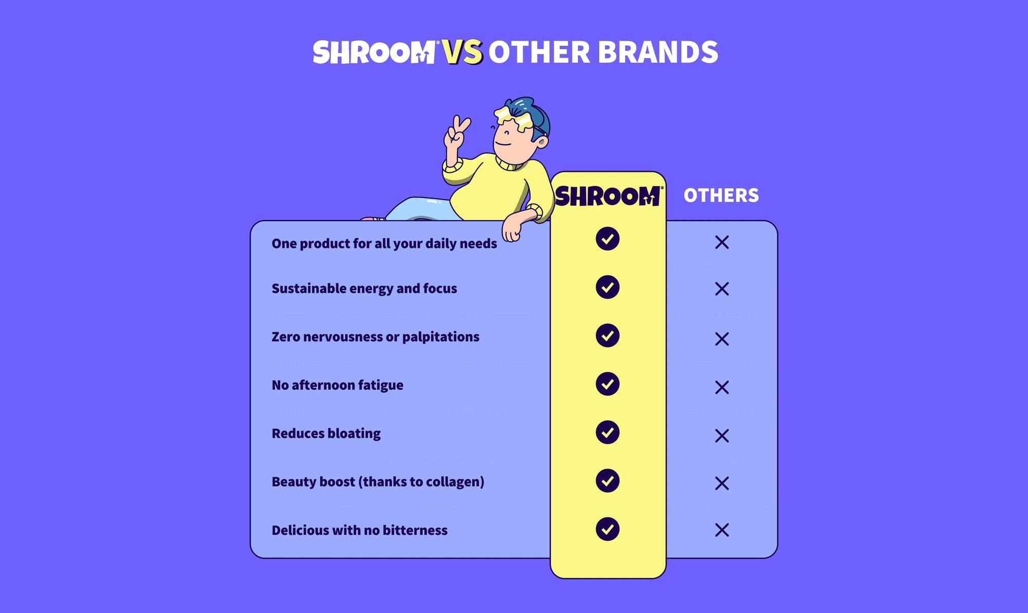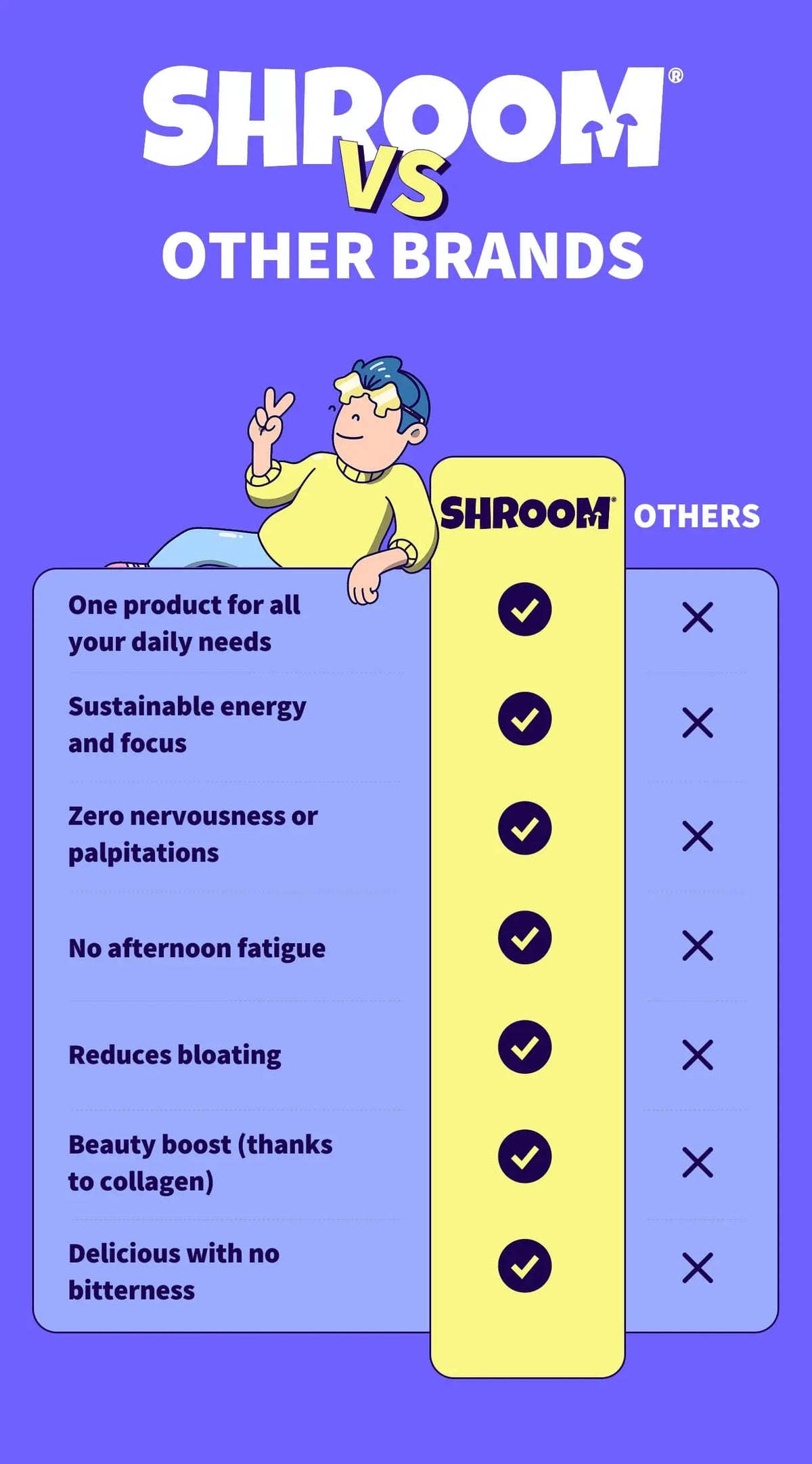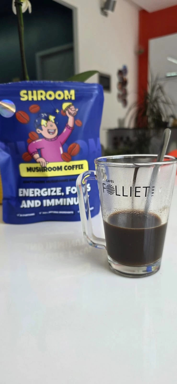Sorry to disappoint, but our mushrooms won’t make you see unicorns salsa-dancing in your living room or debate philosophy with your houseplant. The only ‘trip’ you’ll take is straight to a fully functioning brain before 10 am — which, let’s be honest, already feels pretty magical. If your boss suddenly looks like a smurf, that’s not on our mushrooms — please see a doctor (or maybe just change jobs).