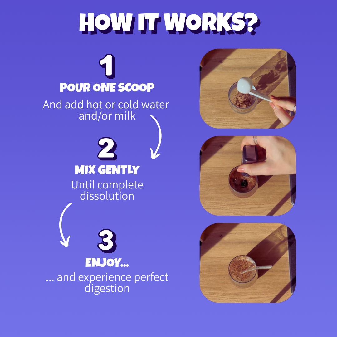 BY ACTING ON YOUR GUT MICROBIOTA IN JUST 3 DAYS, CHAGA HELPS YOU REGAIN PERFECT DIGESTION AND BOWEL MOVEMENTS. FORGET ABOUT STOMACHACHES.