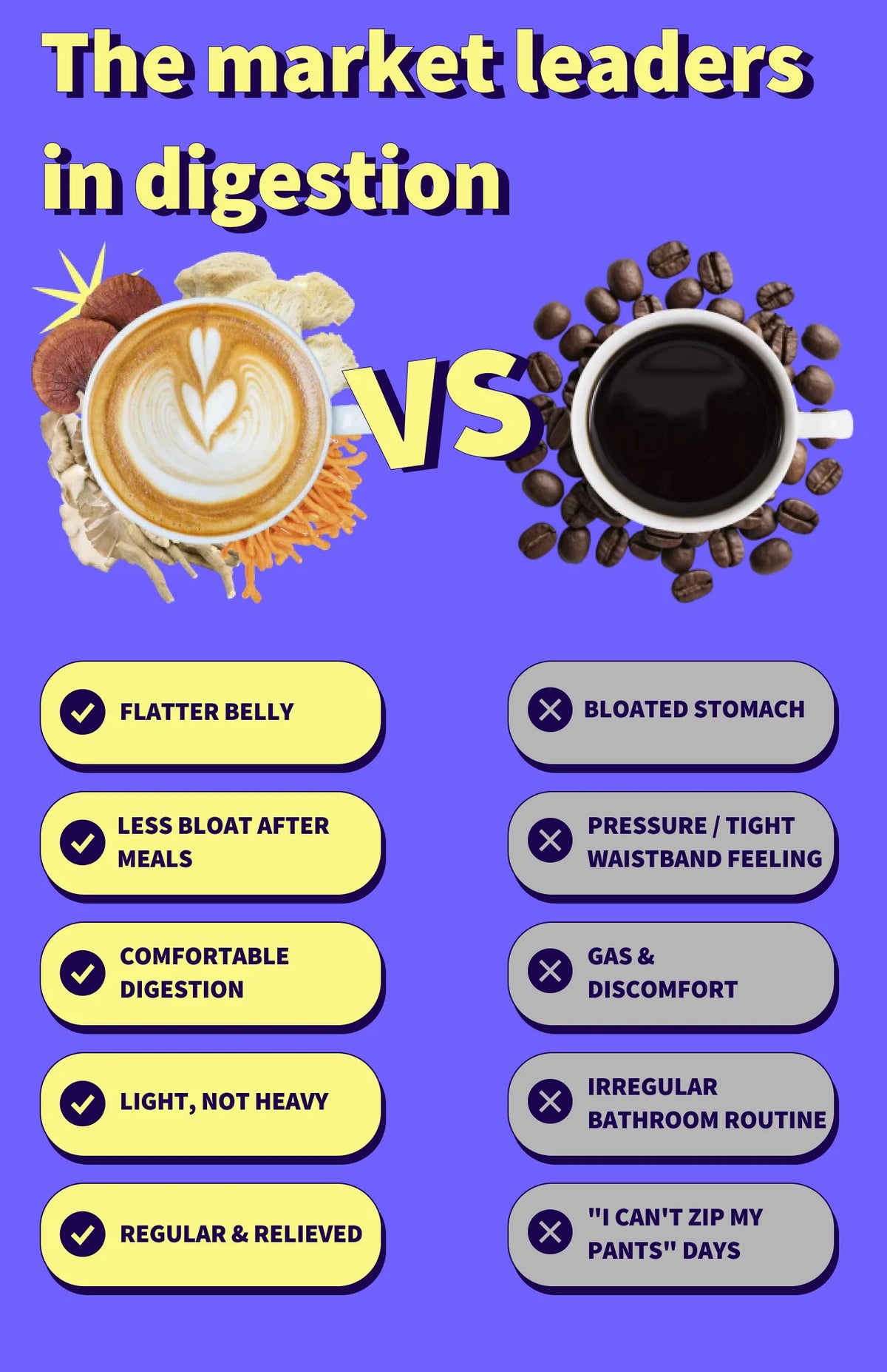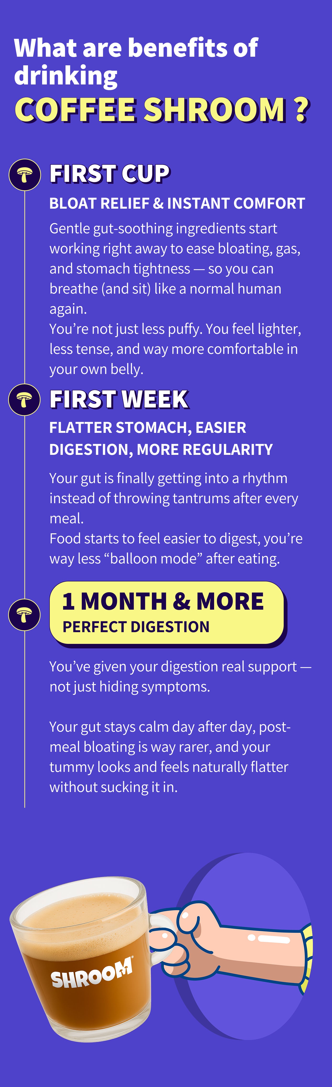 📌 Shroom keeps the ritual you love (the taste, the warmth, the mental clarity)… minus the stomach drama and balloon belly.