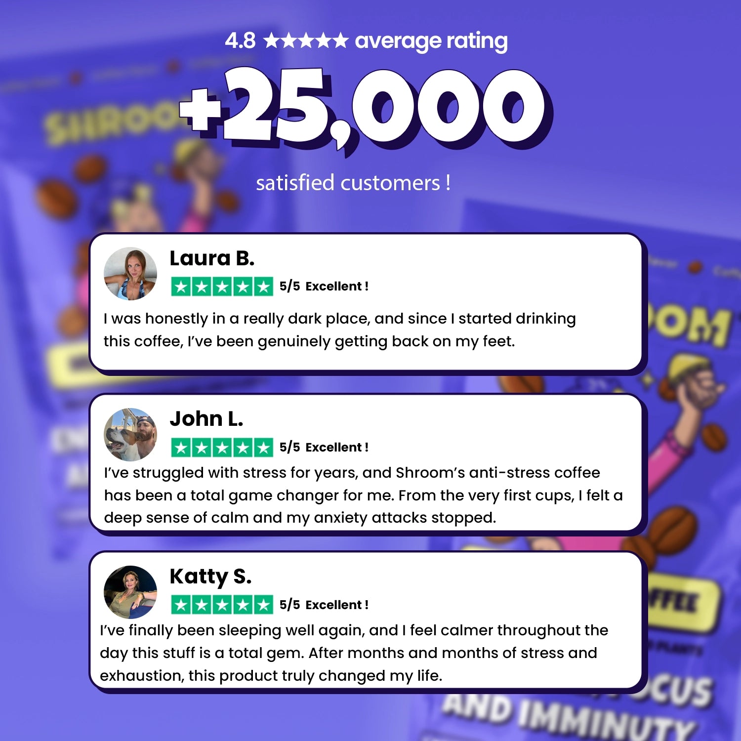Meet your new daily calm coffee: Shroom combines real coffee with L-theanine and functional mushrooms to support a smoother, more grounded day so you can stay sharp without feeling wired.